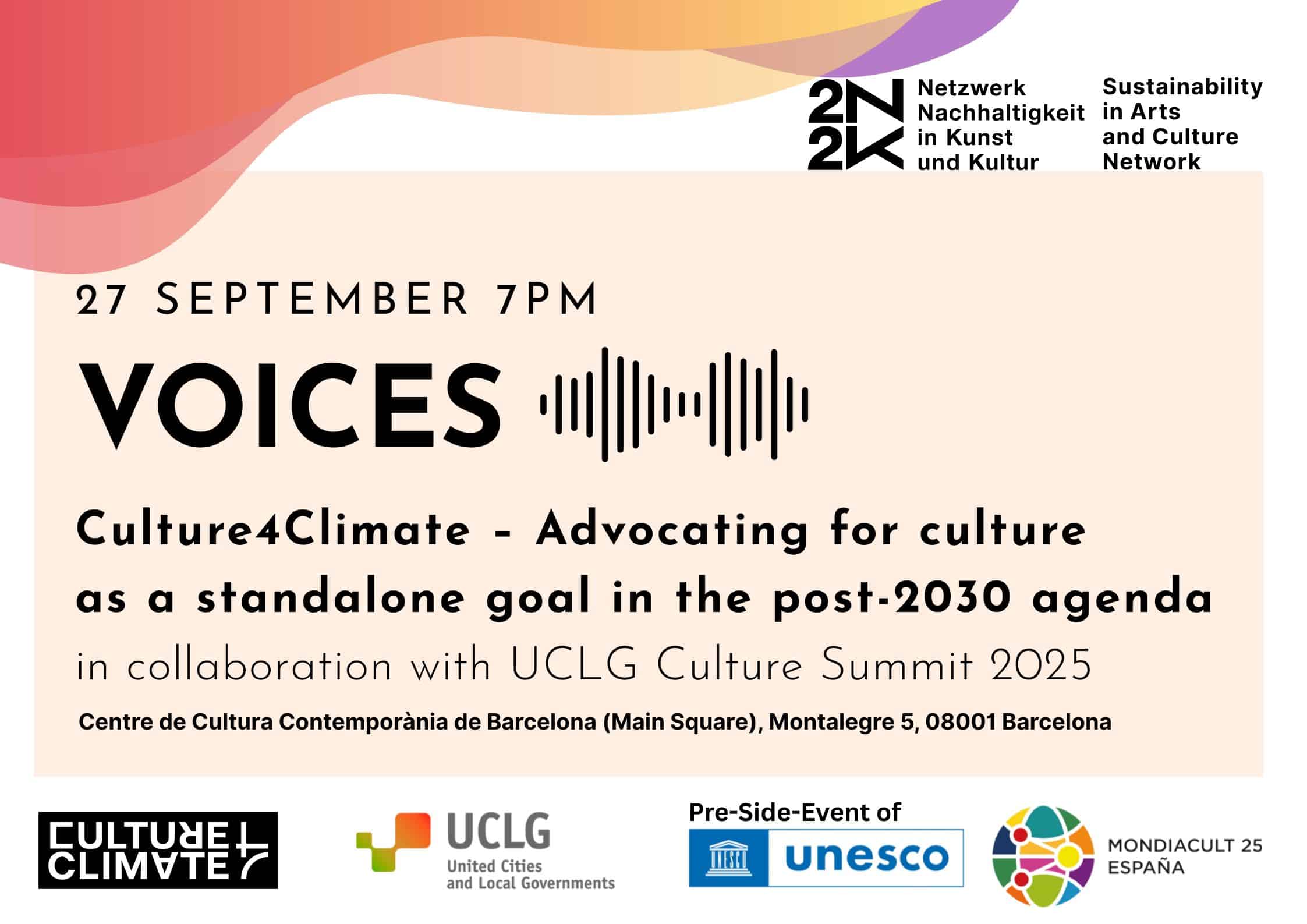 Die Nachhaltigkeitsdeklaration für den Kulturbereich ermöglicht Kunst- und Kultureinrichtungen, Kulturverwaltungen, Kulturverbänden und Kulturtreibenden aller Kultursparten eine Selbstverpflichtung zu globalen Klima- und Nachhaltigkeitszielen.